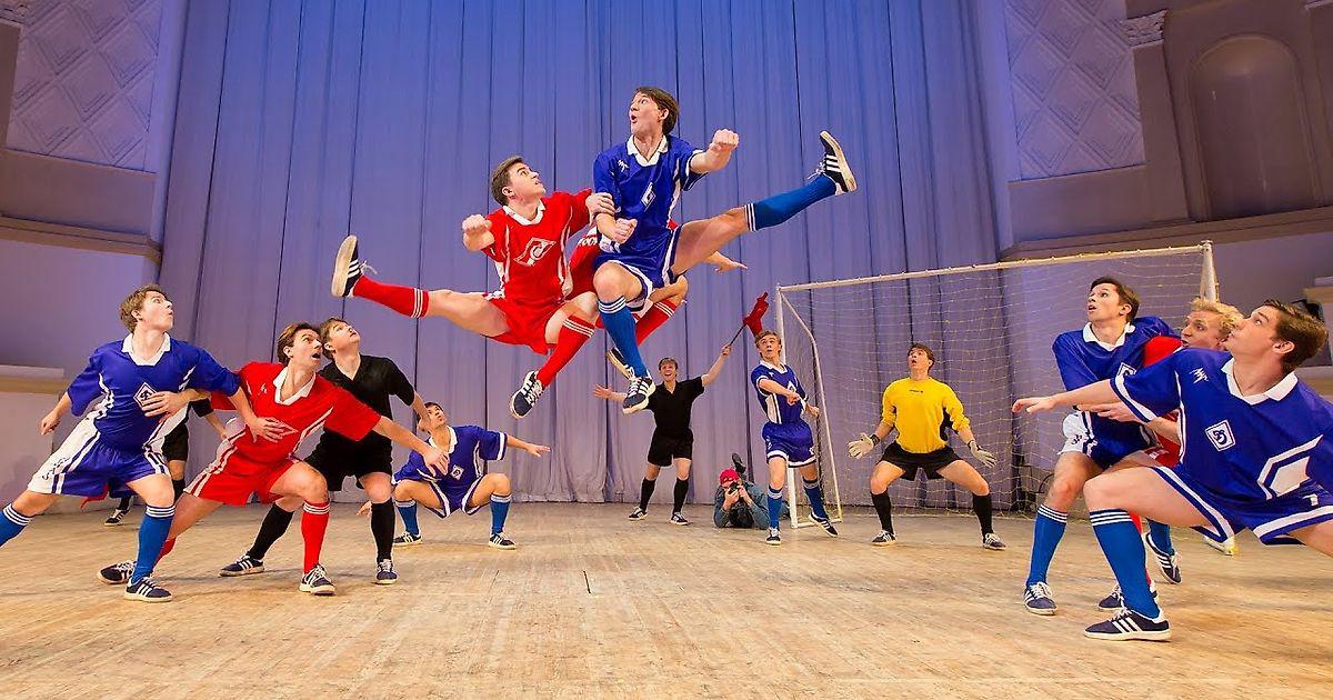 У ансамбля народного танца имени Игоря Моисеева есть хореографическая картина «Футбол». В четыре с половиной минуты номера умещается насыщенная и напряженная (как и сам футбольный матч) драматургия. Но более всего пленяет гротескная развязка. Впрочем, описывать всю прекрасную геометрию танца — задача почти непосильная. Просто посмотрите и насладитесь: