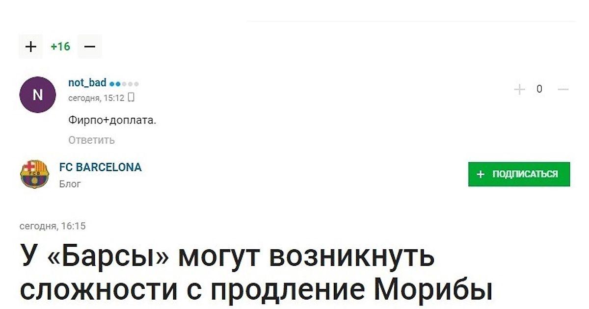 Как вчера отметил я в своей публикации, «Сейчас Мориба не более чем план E для клуба, получается. Но проклинать в случае срыва продления контракта будем мы, конечно же, треклятого алчного Илайша, не понимающего своего счастья!» И эта реакция на переговоры с абсолютно любым наемником на позицию Морибы при гипотетических проблемах при обсуждении нового контракта блестяще описывает то, как продолжает относиться «Барса» к «Ла Масии», словно Бартомеу и не уходил.