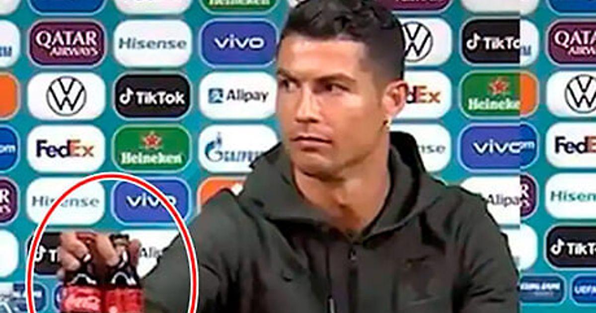 На пресс-конференции сборной Португалии случился забавный эпизод – Криштиану Роналду убрал бутылки с Coca-Cola (спонсор турнира). На видео Криш с пренебрежением произносит имя бренда.