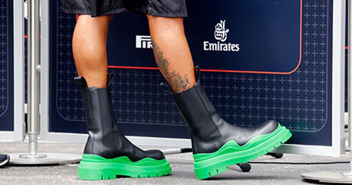 Новый наряд Хэмилтона на Гран-при – чистый мазохизм: здоровенные зеленые кожаные сапоги за $1200 по 28-градусной жаре