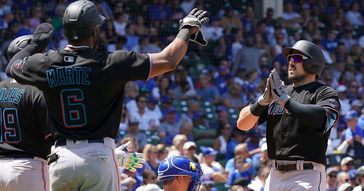 В первом иннинге после гранд-аута Хесуса Агилара Джазз Чишольм вывел гостей вперёд.Затем Адам Дюваль своим хоум-раном (15) отправил Старлинга Марте в дом.