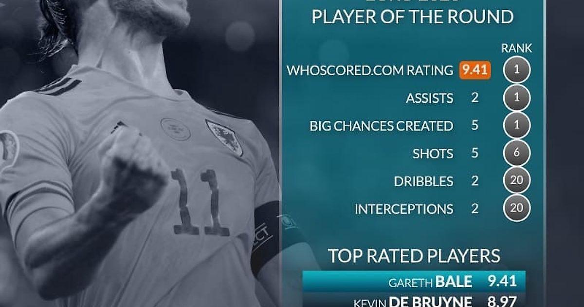 Гарет Бэйл признан лучшим игроком второго тура группового этапа Евро-2020 по версии WhoScored.
