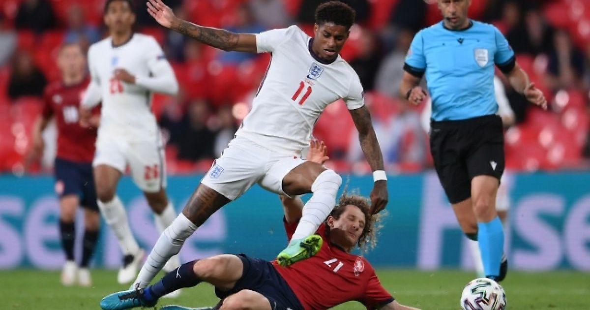 Вчера в Лондоне на стадионе Уэмбли прошёл матч сборных Англии и Чехии этот матч закончился со счётом 1:0 в пользу Англии единственный мяч в этом матче забил Рахим Стерлинг он это сделал на 12-й минуте с подачи Джека Грилиша которую Стерлинг замкнул головой вообще Англия могла выходить вперед уже на второй минуте это мог сделать Стерлинг, но чешскую сборную спасло попадание мяча в стойку ворот.