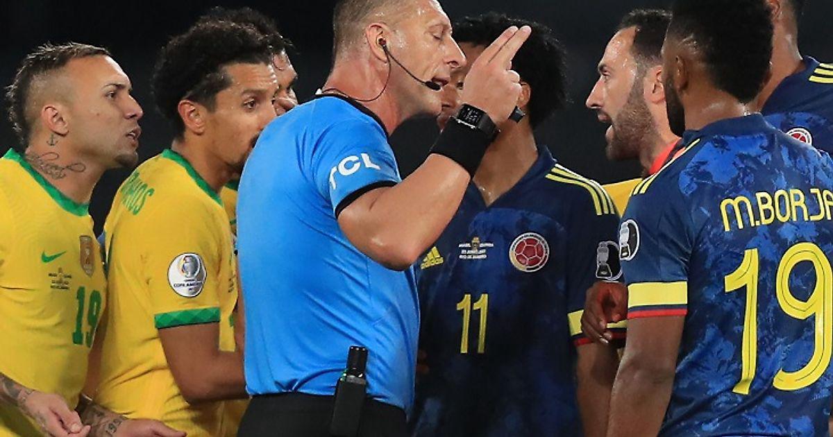 Бразилия дожала Колумбию на 100-й минуте. Игру переломил момент, когда в голевой атаке поучаствовал рефери