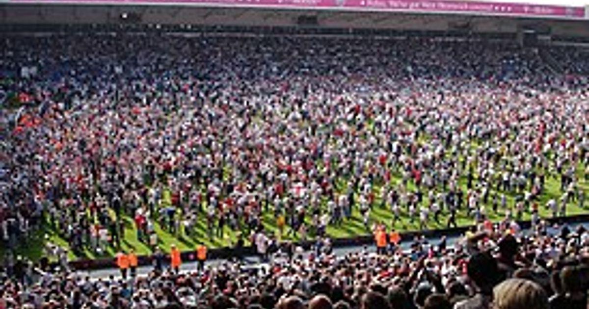 Фанаты "Вест Бромвич Альбион" празднуют спасение от вылета в сезоне 2004-05 после победы над "Портсмутом" 2:0 в последнем туре.