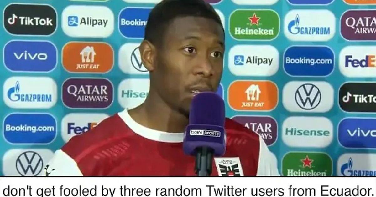 "Алаба топовый, не дайте себя обмануть трем случайным пользователям Твиттера из Эквадора. Он добьется успеха в Мадриде».