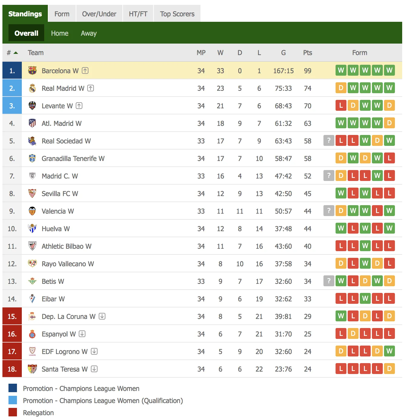 Единственное поражение «Барсы» в сезоне случилось в матче против «Атлетико», занявшего 4-е место, но к тому времени каталонцы досрочно завоевали титул.