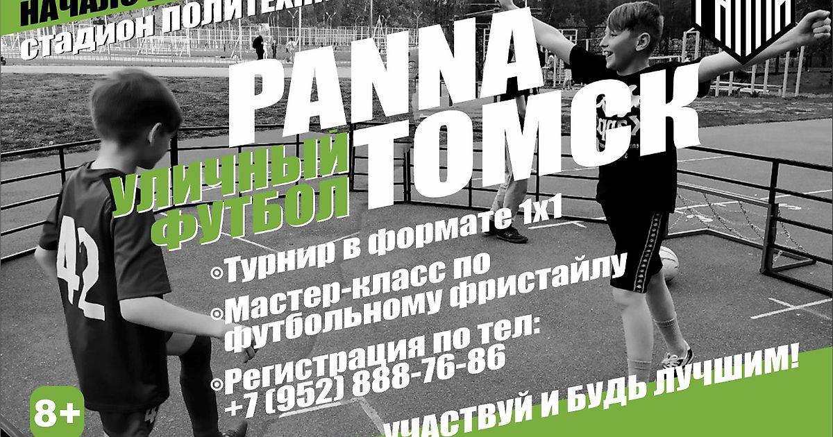 Федерация футбольного фристайла Томской области приглашают принять участие в Первом открытом турнире PANNA! Формат турнира - 1x1 на специальной площадке. Игра длится 3 минуты грязного времени. Главная задача - прокинуть мяч между ног сопернику, в таком случае тебе засчитывается победа. Но и забитые мячи в ворота никто не отменял, это решающий фактор, если панна не проброшена. Набор участников ведется от 8 лет и выше, игроки будут разбиты в дивизионы по возрастам. Схема проведения: групповой этап и далее раунды плей-офф, где разыграются призовые места. Соревнования пройдут 10-11 июля с 11:00 на стадионе «Политехник» Преимущества данного турнира: Качественная наградная атрибутика с нашей символикой победителям и призерам Грамотное судейство Спортивный инвентарь Фотографии, видео, статистика Мастер-класс по футбольному фристайлу По вопросам зачисления на турнир: +7-952-888-76-86 — Никита