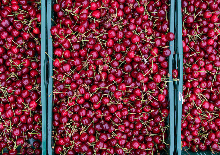 Покупать черешню стоит в разгар сезона – с середины июня до конца июля. При выборе обращайте внимание на внешний вид: кожица должна быть без углублений и бороздок. У спелой черешни мякоть плотная, а кожица глянцевая. Матовая поверхность указывает на то, что плоды не первой свежести.