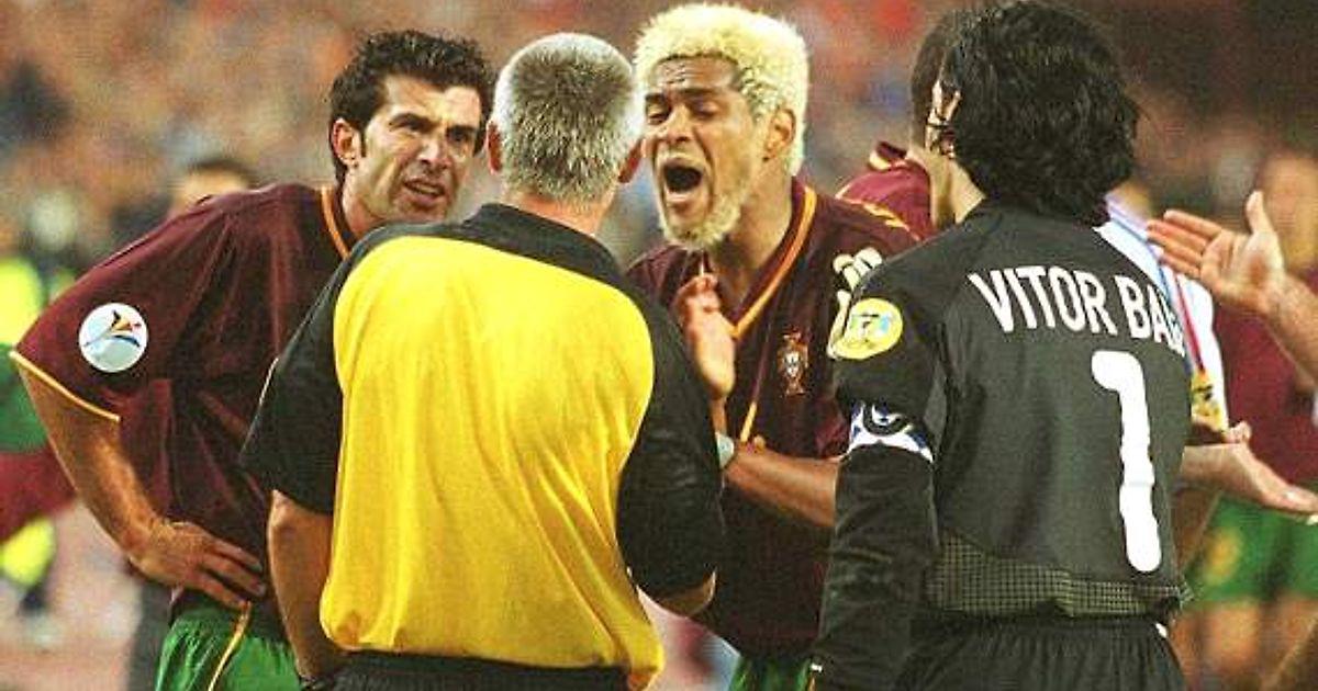 В дополнительное время преимущество французов,проявивших недюжинную волю к победе,стало заметнее.Правда,в основном благодаря тактике,избранной их соперниками,которые все-таки больше были настроены довести дело до футбольной рулетки-серии 11-метровых,чем рисковать ради золотого гола.Однако на 117-й мин. решающим всё же оказалось вмешательство арбитров,подарив всем ещё один прекрасный повод для рассуждений и споров о квалифицированности судейства,а португальцам-оправдание своей неудачи.Это после игры Шавьера рукой в своей штрафной был назначен пенальти,хладнокровно реализованный Зиданом.В итоге,в финал вышел сильнейший. И завершающий забавный штрих к решающему эпизоду, в котором Шавьер с трогательной искренностью провинившегося доказывал, что он не виноват, поскольку не хотел этого. Но видеоповтор показывает, что в момент удара Вилтора ладонь португальца смотрела на его ногу, а в момент касания мяча эта самая ладонь развернулась и преградила путь воздушной сфере...