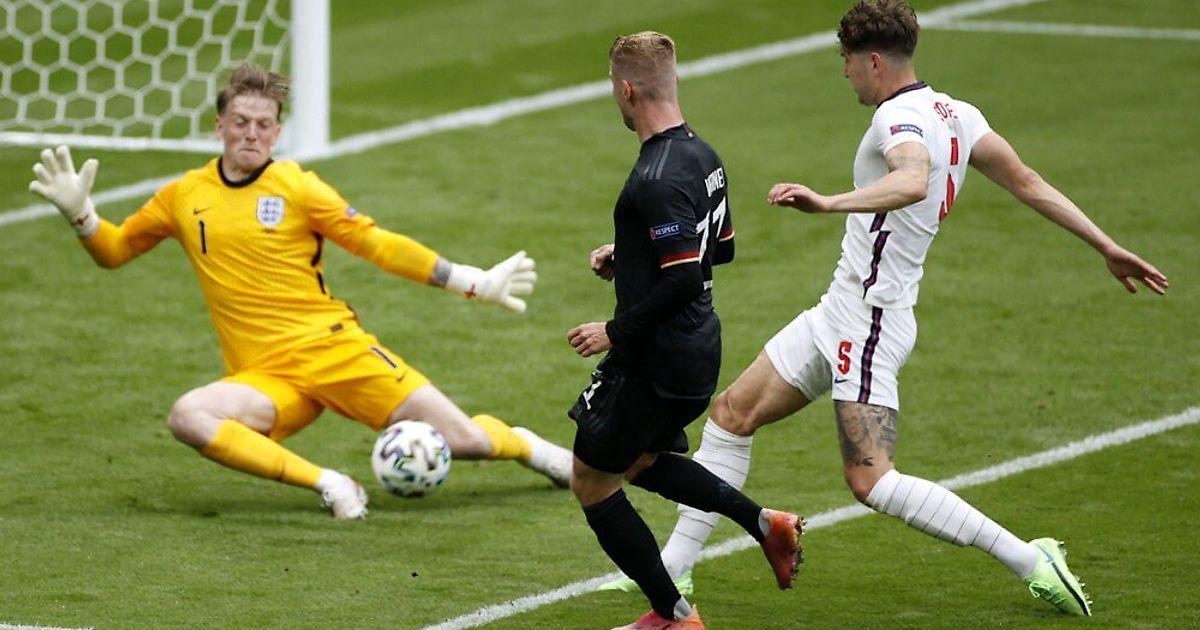 Трое игроков растаскивали соперников в разные стороны, а Магуайр оставался без опеки и подстраивался под подачу. Один раз он пробил после подобной комбинации в створ, а на другом угловом мяч до него не дошёл (зато пробил после атаки вторым темпом). После перерыва ситуация изменилась. Германия стала больше контролировать мяч, а Англия откатилась в привычный «режим Саутгейта». Они забили два мяча после двух ударов и уверенно оборонялись, позволив сопернику нанести всего четыре удара из штрафной (два из них – после 90-й минуты) и убежать 1v1 после собственной ошибки. Качественная игра без мяча и высокая реализация делают идеи Саутгейта практически неубиваемыми. Если второй гол пришёлся после перехвата в центре поля и быстрой атаки, то победный мяч показал, что Англия может в любой момент воспользоваться недоработками обороны соперника. Мюллер не успел накрыть Уокера и позволил ему отдать на Стерлинга, принявшего мяч на границе средней и финальной трети и вытянувшего за собой Рюдигера из линии защиты. Рахим сделал рывок в зону перед штрафной и отдал на Кейна. У Англии в этой зоне оказалось три игрока, поэтому Киммих решил сужать и не успел накрыть прострел Шоу. Рюдигер бросил бежать за Стерлингом ещё после паса Грилиша на фланг, Гинтер видел его, но решил играть по мячу, а Хуммельс был ориентирован на Кейна. Так Стерлинг остался один около вратарской.