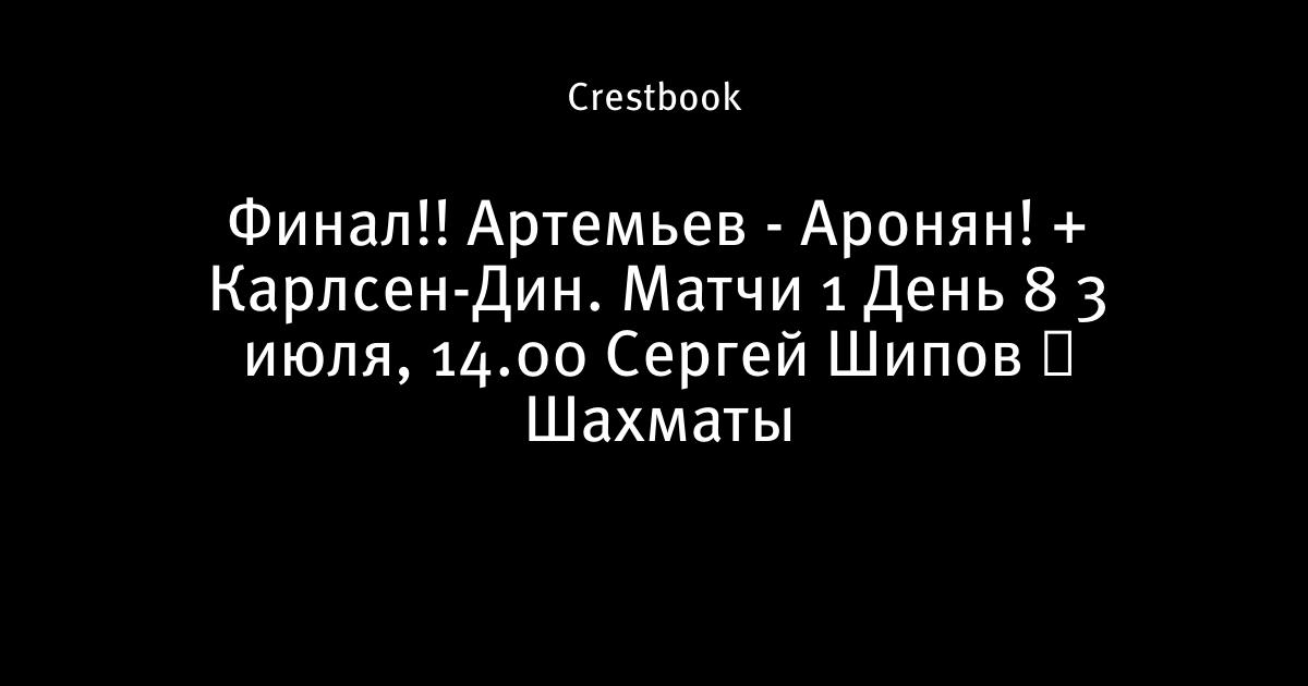 Финал!! Артемьев - Аронян! + Карлсен-Дин. Матчи 1 🏆 День 8 ⏰ 3 июля, 14.00 🎤 Сергей Шипов ♕ Шахматы