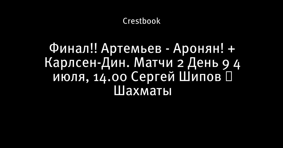 Финал!! Артемьев - Аронян! + Карлсен-Дин. Матчи 2 🏆 День 9 ⏰ 4 июля, 14.00 🎤 Сергей Шипов ♕ Шахматы