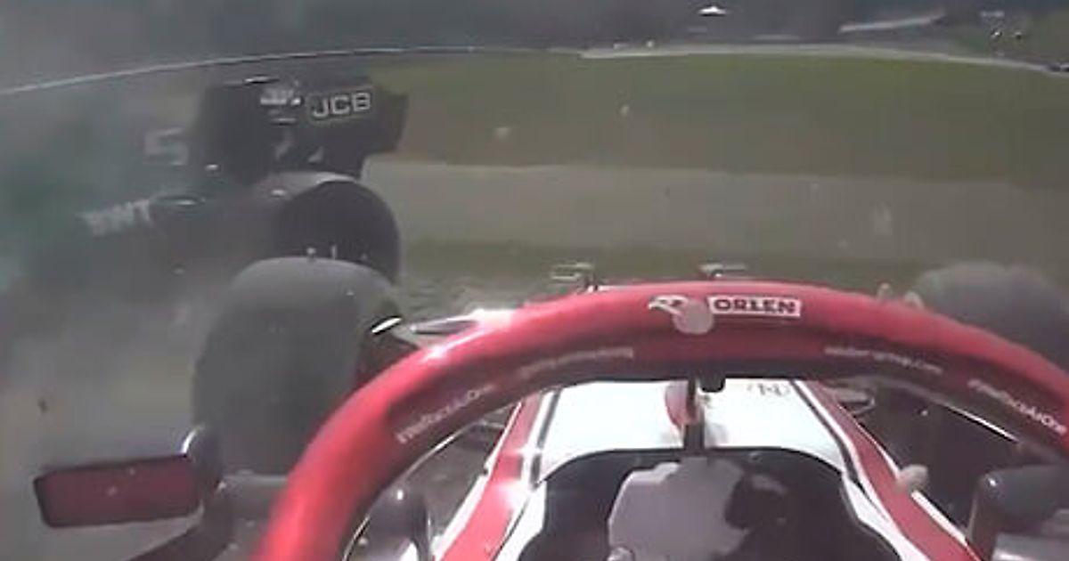 Кими попытался удержать более выгодную линию для следующего левого поворота – и постарался перекрыть ее Себу. Однако Феттель уже формально оказался впереди на ровном отрезке и закономерно счел своим право диктовать траекторию – так что пилот «Астон Мартин» сам попытался оттеснить соперника. Итог – совместный вылет в гравий.