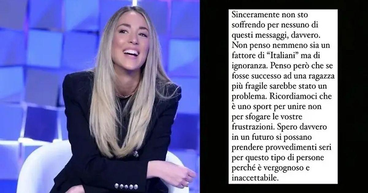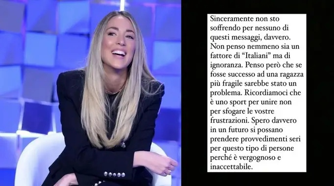 Аличе ответила на поток хейта сдержанно: «Честно говоря, я не страдаю ни от одного из этих сообщений. Я даже не думаю, что это «фактор итальянцев», это просто невежество. Но я думаю, что если бы это случилось с более хрупкой девушкой, это было бы проблемой".