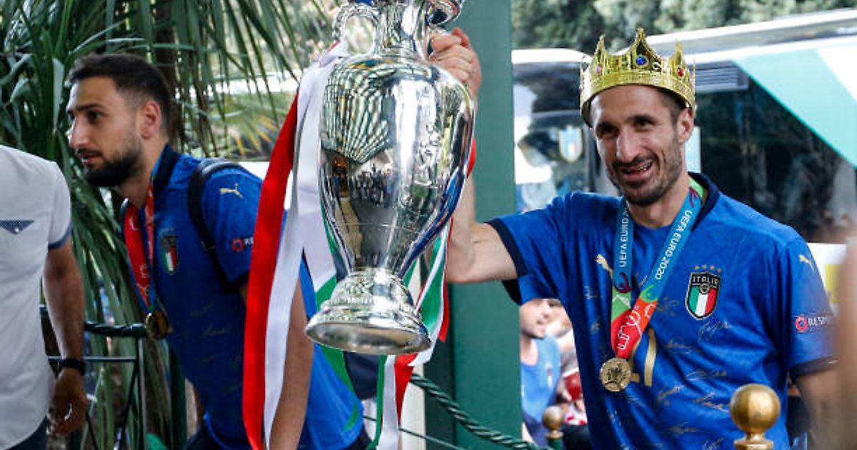 Доннарумма 🇮🇹, Думфрис 🇳🇱, Кьеллини 🇮🇹, Бонуччи 🇮🇹, Спинаццола 🇮🇹, Погба 🇫🇷, Стерлинг 🏴, Хёйбьерг 🇩🇰, Жоржиньо 🇮🇹, Де Брюйне 🇧🇪, Кейн 🏴