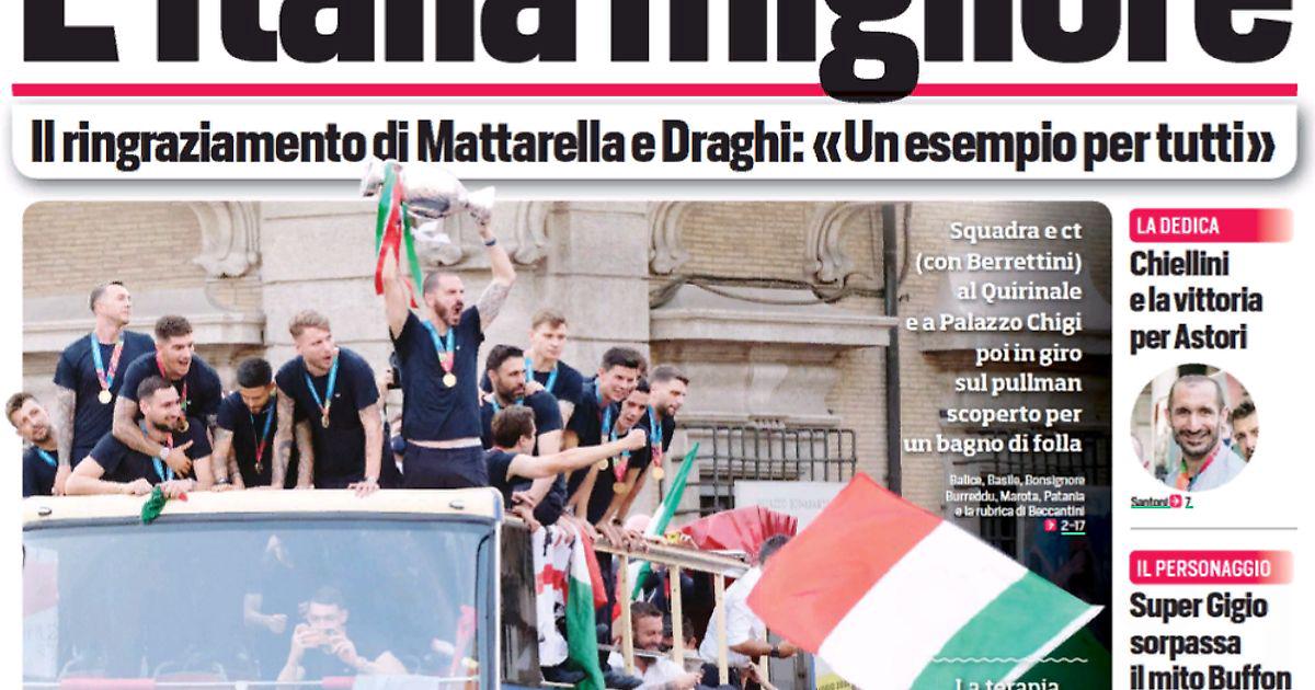 Возвращение чемпионов. Маттарелла и Драги приняли Адзурри: «Вы сделали многое для объединения страны». Затем парад в Риме в безумной толпе. Теперь цель – это Мундиаль. И из-за границы приходят только аплодисменты. Проблема с расизмом в Англии.