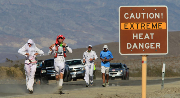 Долина смерти, по территории которой проходит забег, расположена в пустыне Мохаве в Калифорнии. Здесь выпадает крайне мало осадков (менее 50 мм в год), и все лето держатся высокие температуры воздуха – около 50 °С.