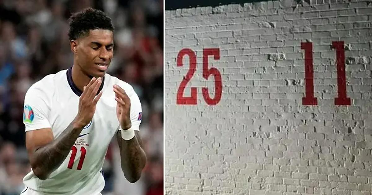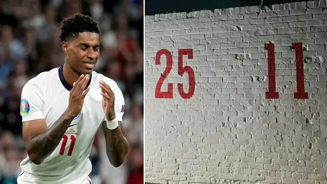 Фреска была нарисована в Дарлингтоне и изображала номера 25, 17 и 11 - номера футболок Рэшфорда, Джейдона Санчо и Букайо Сака на Евро-2020.