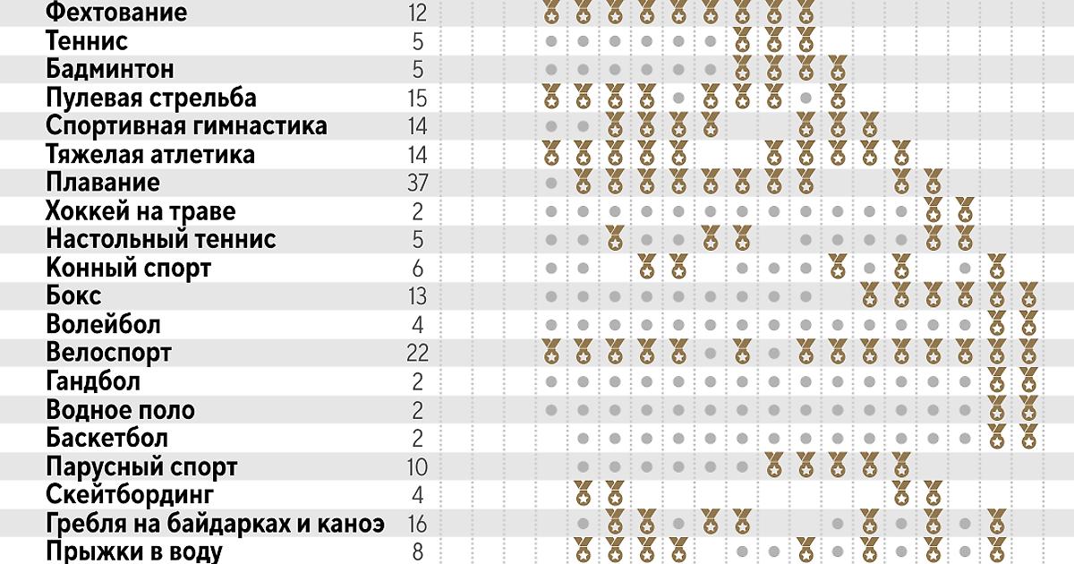 Российские спортсмены примут участие в следующих спортивных дисциплинах (всего 41 вид спорта):