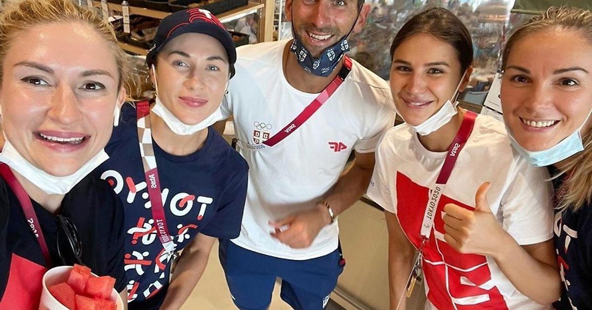 Его увидела в столовой Анна Сень и рассказала мне. Мы скромненько подошли и попросили Владу Бобровникову обратиться к Джоку, ведь она владеет сербским. Его реакция просто порадовала: может, Новак и не знал, что мы олимпийские чемпионки, но сфоткался с нами с удовольствием. Видно было, что он совершенно искренний, простой и открытый человек. Я подарила ему значок с олимпийским мишкой, а он в ответ: "И у меня есть кое-что для тебя". И протянул значок сербской олимпийской команды на Играх в Токио. После такой встречи с Джоковичем у меня прошли последние симптомы акклиматизации. Настроение просто супер.