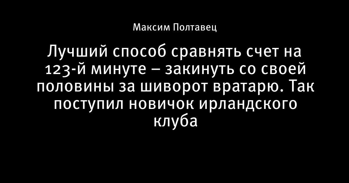 Лучший способ сравнять счет на 123-й минуте – закинуть со своей половины за шиворот вратарю. Так поступил новичок ирландского клуба