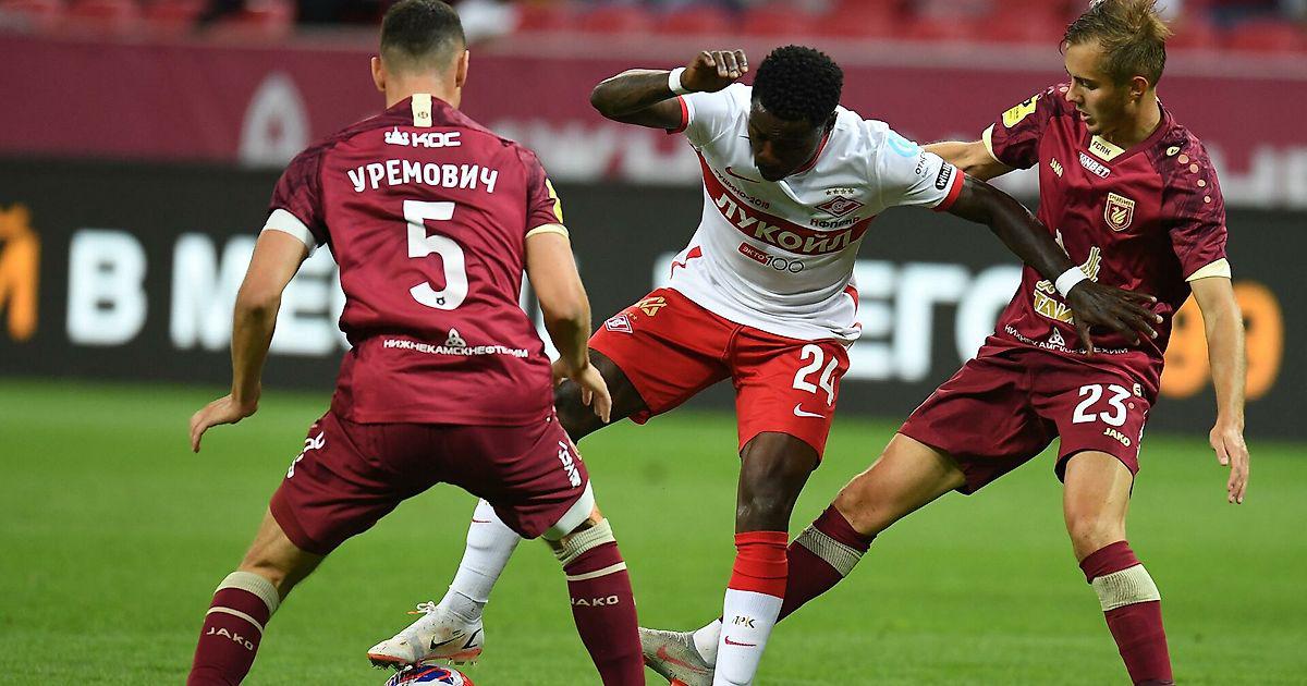 На 38-й минуте им даже удалось поразить ворота Дюпина: центральный защитник Самуэль Жиго откликнулся на подачу Промеса с углового и удачно ее замкнул, но в ходе этого эпизода Роман Зобнин нарушил правила на Абильдгоре, не дав ему добраться до мяча раньше Жиго. В связи с этим мяч не был засчитан. Этот незасчитанный гол был сильно похож на мяч Жиго, который он забил в предыдущем матче в Кубке ПариМатч Премьер против «Химок», также после подачи Промеса с углового. Через две минуты еще один центральный защитник «Спартака» Георгий Джикия опасно ударил головой после розыгрыша штрафного, но и тут все тот же Абильдгор помешал, переведя удар Джикии на угловой. Под занавес первого тайма спартаковцы упустили еще один момент: нигериец Виктор Мозес не смог разобраться с Дюпиным после замечательной тонкой передачи Джордана Ларссона, отлично переигравшего во время своего прохода Илью Самошникова. Таким образом, первый тайм закончился без голов, и нас ожидал увлекательный второй тайм.