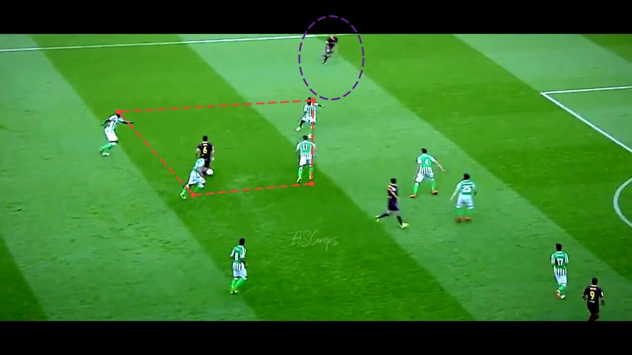 Какой же прекрасный тайминг и качество паса. Если бы Хави отдал на доли секунды раньше-вряд ли Альба убежал бы. Если бы отдал на доли секунды позже-Альба был бы в офсайде. А он отдаёт вовремя-точь в точь.