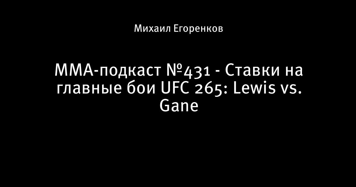 ММА-подкаст №431 - Ставки на главные бои UFC 265: Lewis vs. Gane