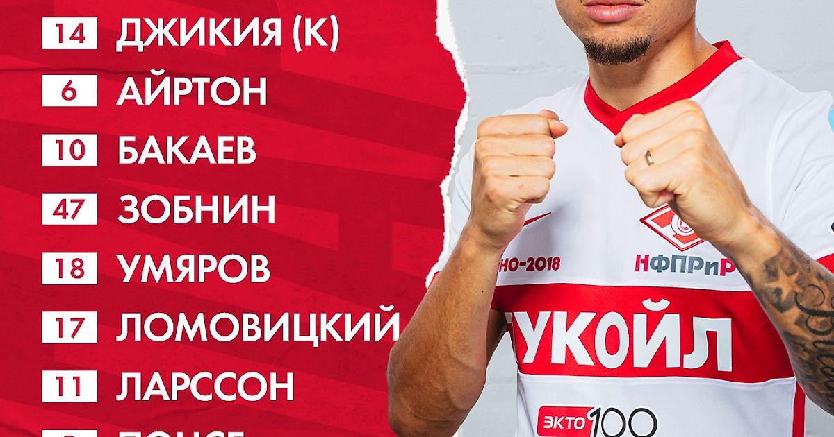 С первых минут сыграют: Максименко, Рассказов, Жиго, Джикия (к), Айртон, Умяров, Зобнин, Ломовицкий, Бакаев, Ларссон, Понсе.
