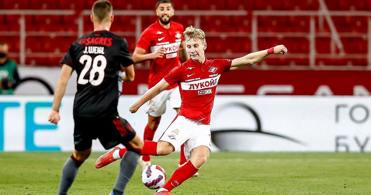 - Зобнин и Хендрикс прессинговали центральных полузащитников Бенфики и отвечали всю игру именно за них (своеобразный размен игроками). Причем очень важно понимать, что Зобнин делал это высоко (часто уходил на позицию нападающего), а Хендрикс оставался чуть ниже. Отвечать за зоны между защитниками они не должны были, а наоборот, всегда были готовы к прессингу игроков центра поля в момент атаки соперника.