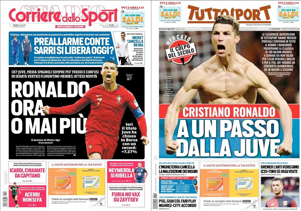 Известнейшая итальянская спортивная газета Tuttosport вышла с новостью – Роналду может перейти в "Ювентус". Он окончательно принял решение, что не останется в Мадриде, и туринский клуб может стать подходящим вариантом. Переговоры уже ведутся.