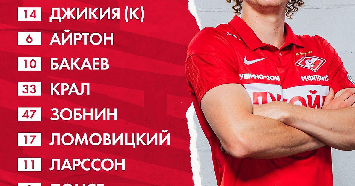 С первых минут сыграют: Максименко, Рассказов, Джикия (к), Жиго, Айртон, Крал, Зобнин, Ломовицкий, Ларссон, Бакаев, Понсе.