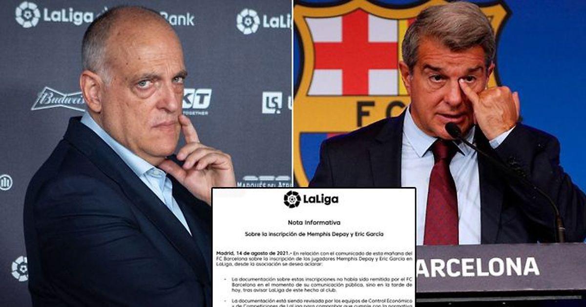 Официальное заявление Ла Лиги, в котором утверждается, что «Барселона» еще не завершила регистрацию Депая и Гарсии