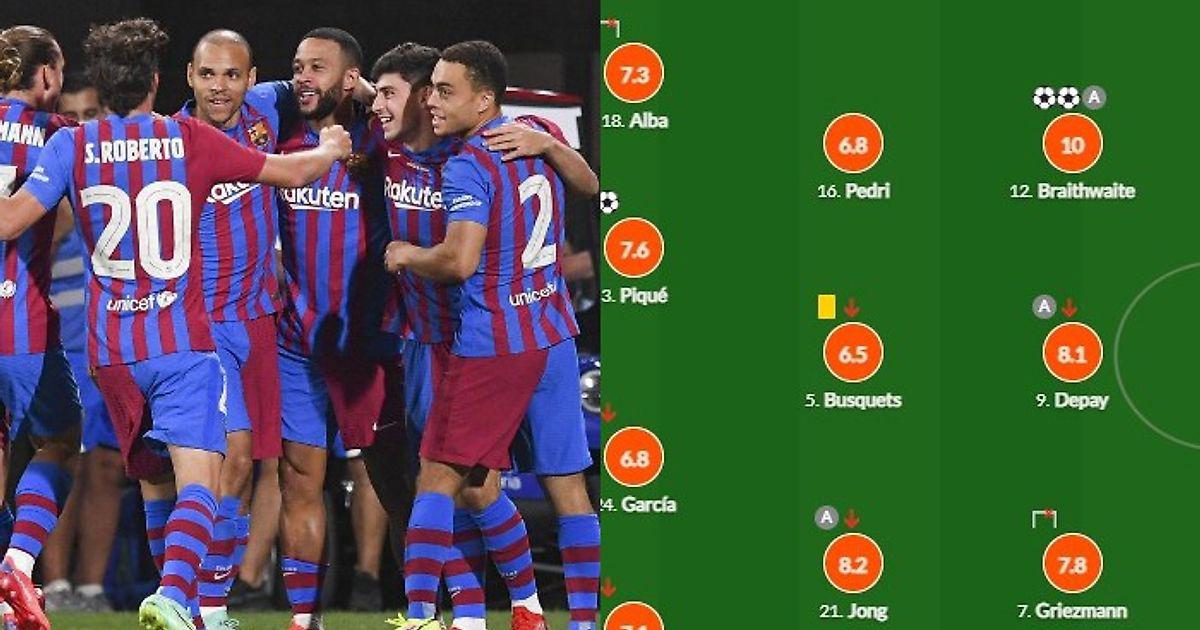 Напряженный матч между «Барселоной» и «Реал Сосьедад» завершился победой каталонцев 4-2. Можно отметить прекрасный дебют Мемфиса Депайя и его голевую передачу на Жерара Пике, открывшего счет на 19й минуте встречи. А также Мартина Брейтуэйта – неожиданного игрока в «основе» «Барселоны», забившего дубль и ставшего главным героем матча. Мартин получил максимально высокую оценку от портала