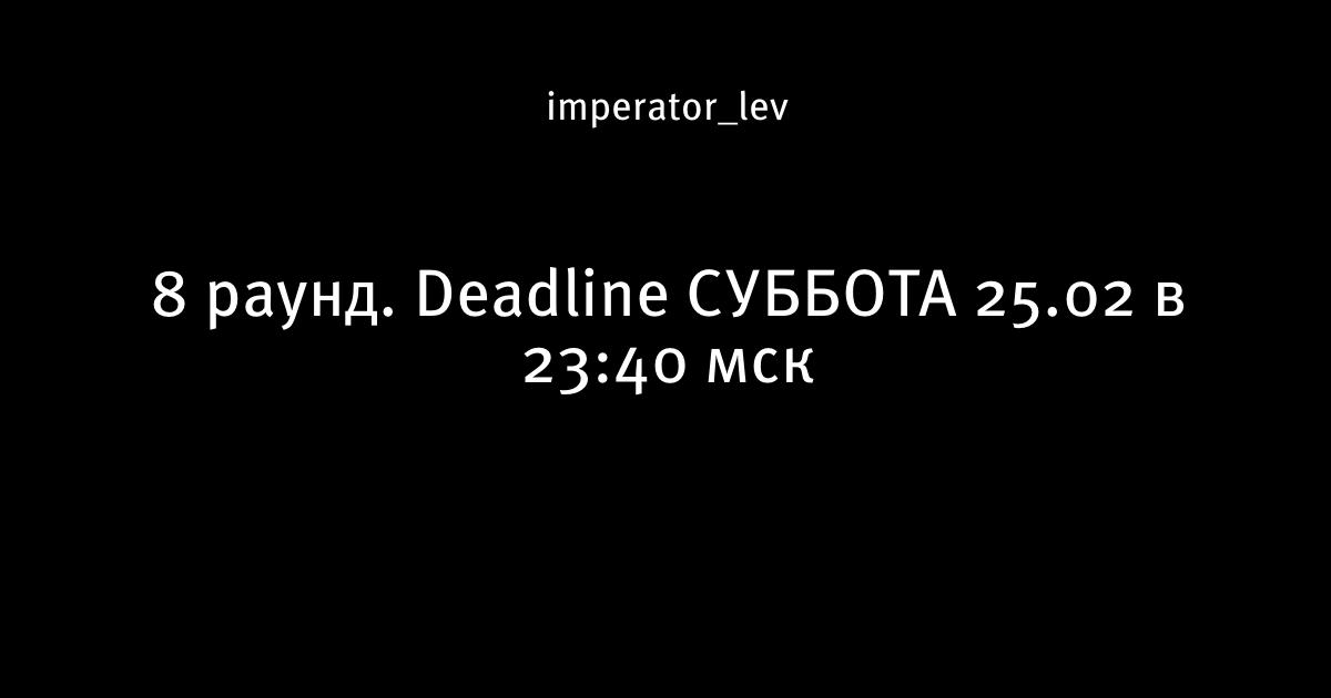 8 раунд. Deadline СУББОТА 25.02 в 23:40 мск