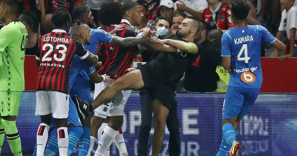 Болельщики "Ниццы" бросали бутылки в игрока соперника Димитре Пайета и всячески провоцировали его. Игрок, не выдержав, кинул попавшую в него бутылку обратно на трибуны, что вызвало прорыв болельщиков на поле. Матч был прерван, а игроки "Марселя" после потасовки отказались снова выходить на поле. Клубу присудили техническое поражение. Игроки показали свои повреждения после выходки болельщиков, но и это ничего не изменило.