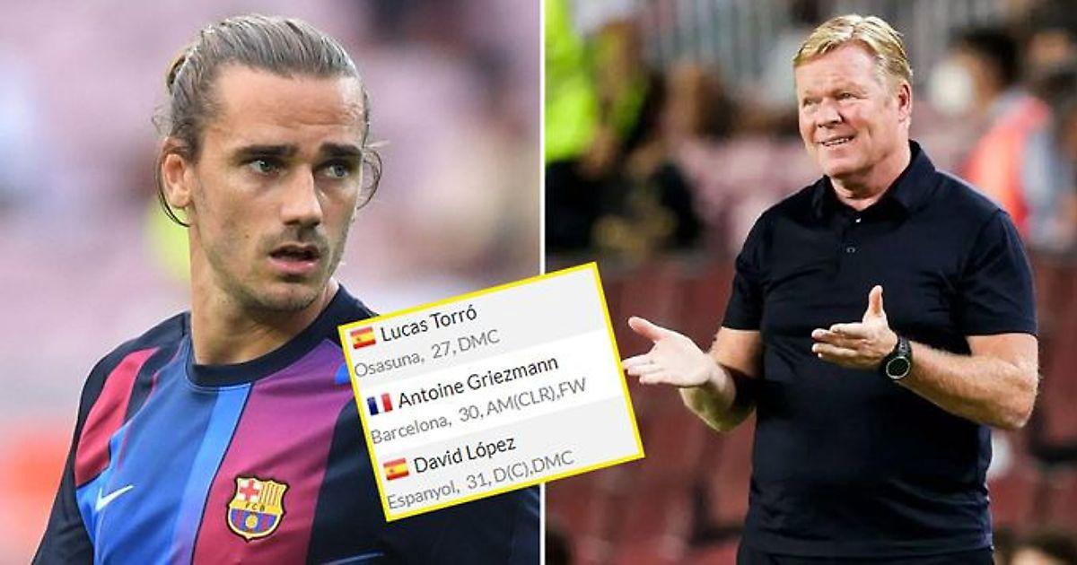В то время как правый защитник «Осасуны» Начо Видаль и опорный полузащитник Лукас Торро возглавляют список с 11 и девятью отборами соответственно, Гризманн - единственный нападающий в списке.