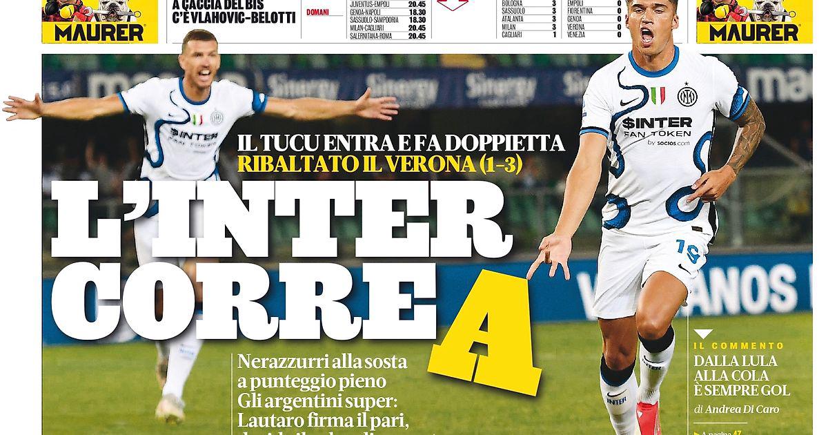 Бывший игрок «Лацио» дебютирует с дублем: Индзаги победил, отыгравшись в Вероне (3:1). Нерадзурри сразу пропустили из-за ошибки Хандановича. Лаутаро сделал счёт 1:1. Затем шоу от «Туку»: вышел в концовке и забил два гола за 11 минут. Тренер: «Мы бесконечны».