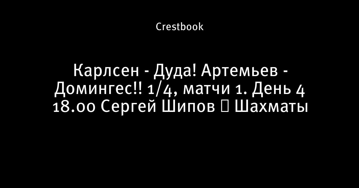 Карлсен - Дуда! Артемьев - Домингес!! 🏆 1/4, матчи 1. День 4 ⏰ 18.00 🎤 Сергей Шипов ♕ Шахматы