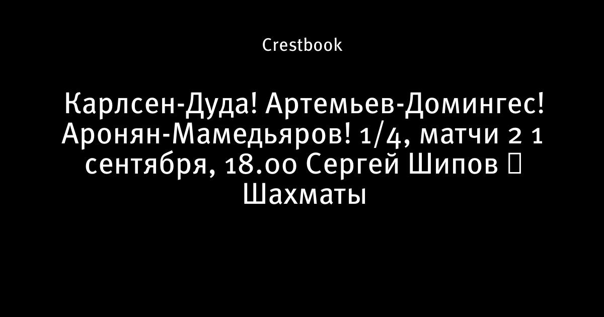 Карлсен-Дуда! Артемьев-Домингес! Аронян-Мамедьяров! 🏆 1/4, матчи 2 ⏰ 1 сентября, 18.00 🎤 Сергей Шипов ♕ Шахматы