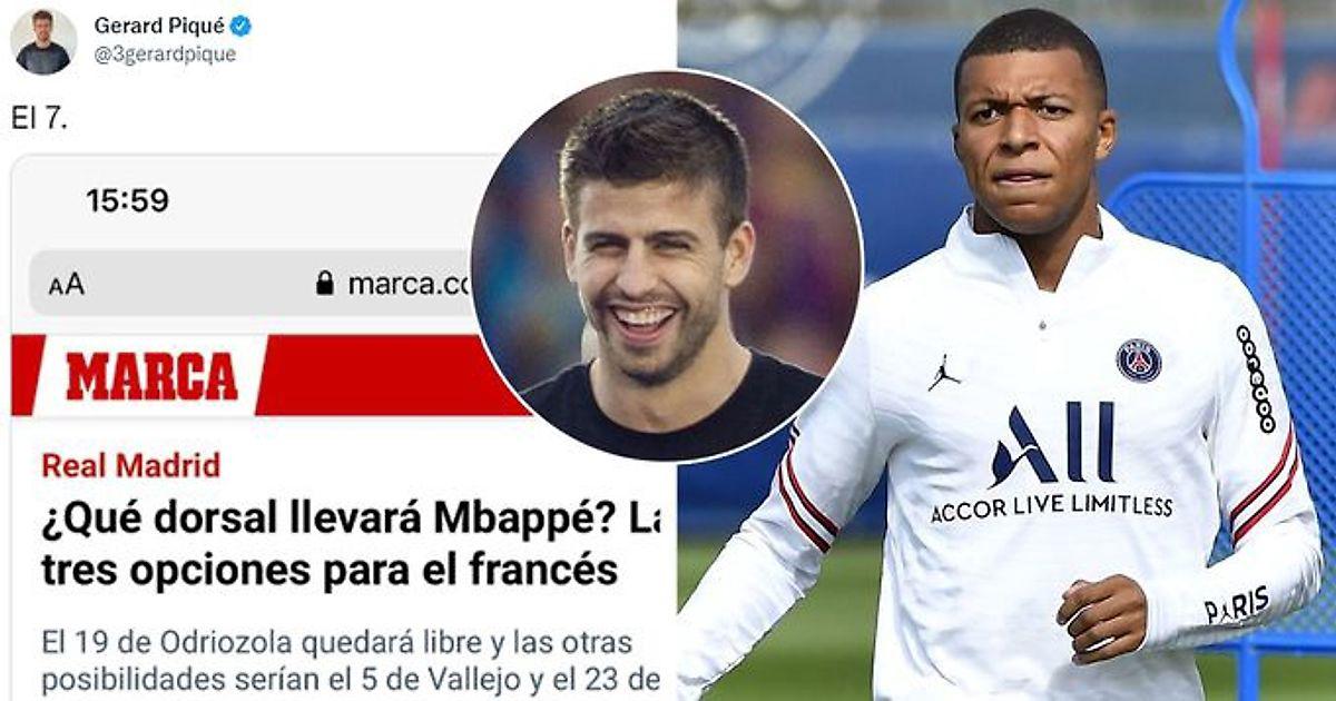 Центральный защитник у себя в Twitter разместил статью издания Marca, озаглавленную «Какой номер возьмет Мбаппе в «Мадриде». Три варианта для француза». Над фото статьи Пике подписал: «Номер 7».