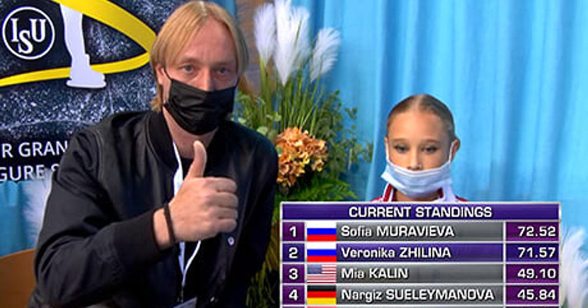 «Сейчас на чиле, да? Работочка закончилась». Юные ученицы Плющенко обыграли фигуристок «Хрустального», и Евгений развлекся