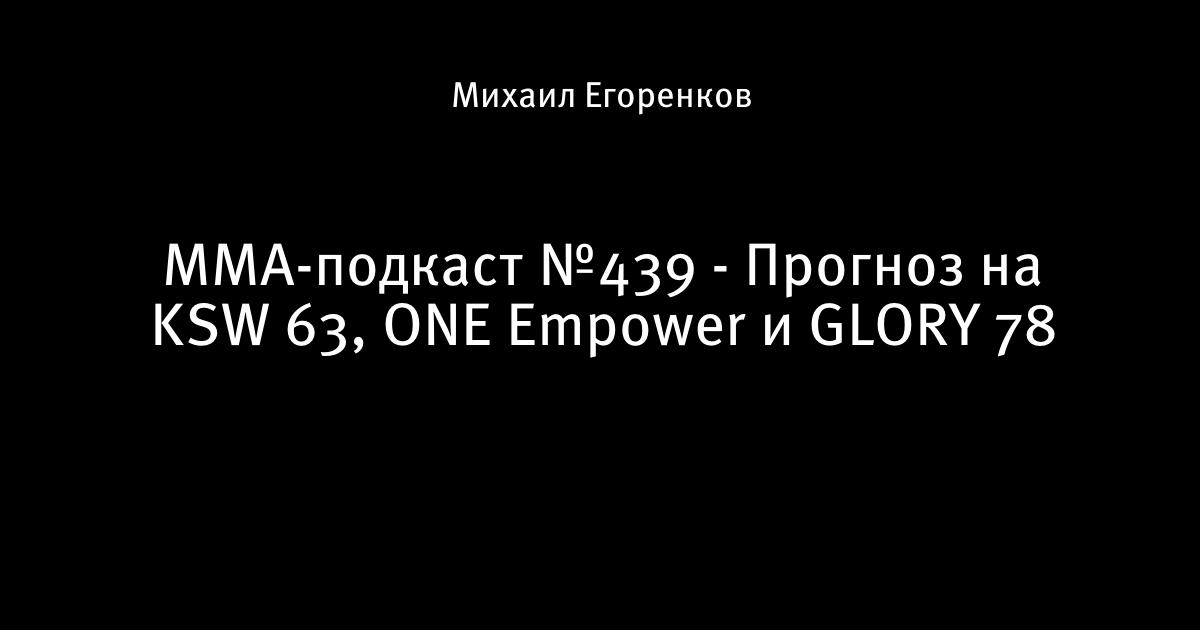 ММА-подкаст №439 - Прогноз на KSW 63, ONE Empower и GLORY 78