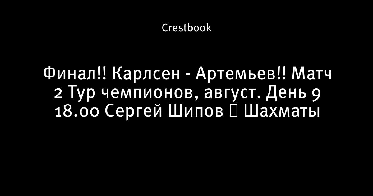 Финал!! Карлсен - Артемьев!! Матч 2 🏆 Тур чемпионов, август. День 9 ⏰ 18.00 🎤 Сергей Шипов ♕ Шахматы