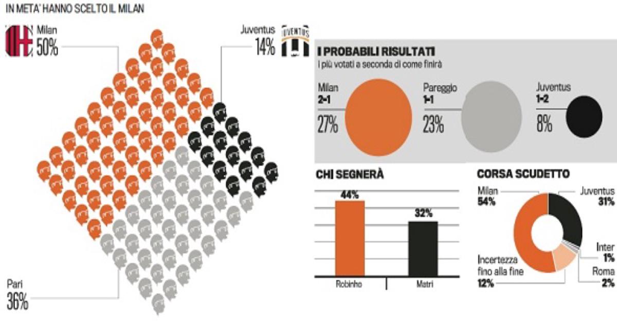 Завтра нас ожидает великолепное шоу на Сан-Сиро, игра за Скудетто, именно так многие успели окрестить этот поединок. Корреспонденты Gazzetta dello Sport опросили 100 человек, как спортсменов, так и далеких от спорта людей, известных в науке, шоу-бизнесе и политике.
