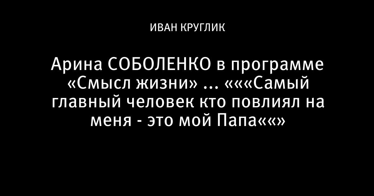 Арина СОБОЛЕНКО в программе «Смысл жизни» ... «««Самый главный человек кто повлиял на меня - это мой Папа««»