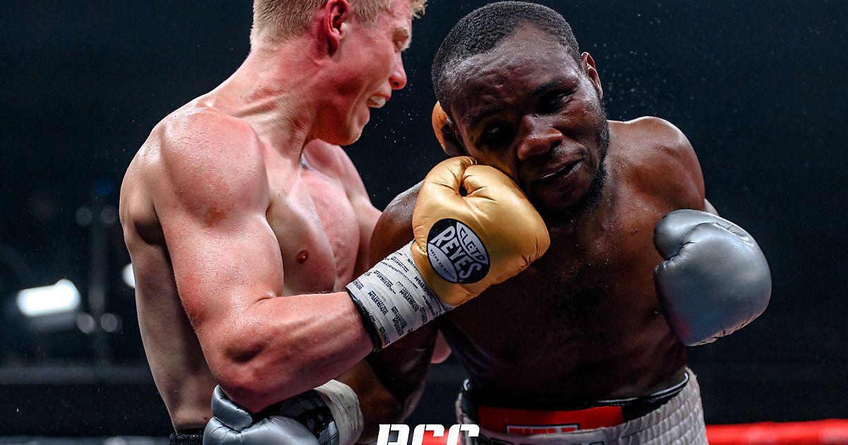 В седьмом поединке вечера турнира RCC Boxing Promotions сошлись Марк Урванов (Екатеринбург, 19-2-1) и Ото Джозеф (Ибадан, Нигерия, 17-0-0). Рейтинговый бой проходил в категории до 59 кг.