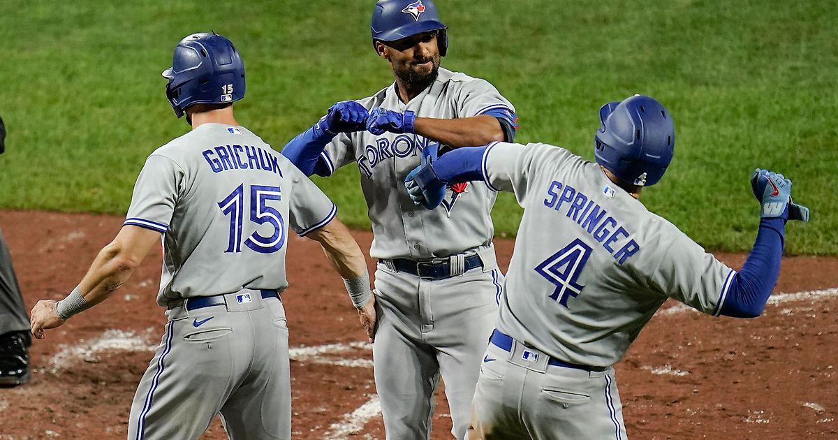 В 7 иннинге Бо Бичетт своим хоум-раном (23) отправил Владимира Герреро в дом.Затем Алехандро Кирк своим хоум-раном (8) отправил Теоскара Эрнандеса в дом.После аута Брейвика Валеры Джеррод Дайсон успел прибежать в дом.Далее Маркус Семьен своим хоум-раном (39) отправил Рэндала Гричука и Джорджа Спрингера в дом.После этого Теоскар Эрнандес своим хоум-раном (26) отправил Владимира Герреро и Бо Бичетта в дом.