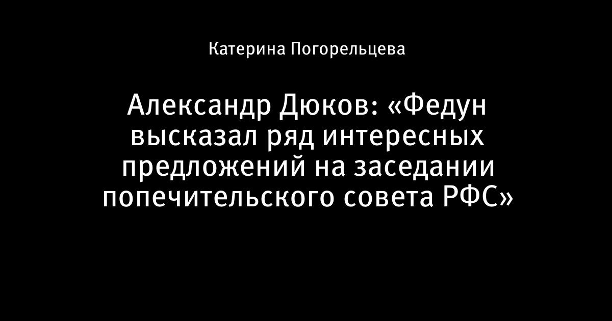 «Было рассмотрено несколько вопросов, — сказал Дюков. — Например, стимулирование частных инвестиций в футбол. Заседание посетил Леонид Арнольдович Федун, который высказал ряд интересных предложений. Часть из них будут проработаны.